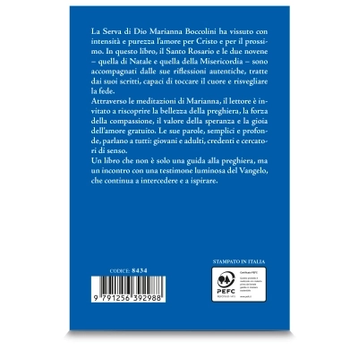 La Serva di Dio Marianna Boccolini ha vissuto con intensità e purezza l’amore per Cristo e per il prossimo. In questo libro, il Santo Rosario e le due novene – quella di Natale e quella della Misericordia – sono accompagnati dalle sue riflessioni autentiche, tratte dai suoi scritti, capaci di toccare il cuore e risvegliare la fede.