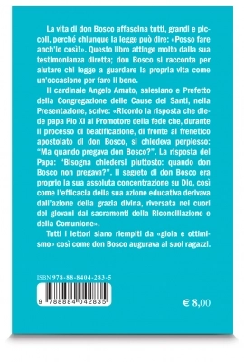 In un mondo dove ci accorgiamo sempre di più dell’importanza dell’educazione, e allo stesso tempo ci rendiamo conto dell’emergenza educativa, ecco una pubblicazione che ci presenta una figura eminente nel campo della formazione: san Giovanni Bosco. La vita di don Bosco affascina tutti, grandi e piccoli; e questo perché chiunque la legge, qualunque età abbia, può dire: «Posso fare anche io così!». La prima parte del testo racconta gli episodi salienti della vita di san Giovanni Bosco; la seconda si sofferma su alcuni tratti della sua spiritualità utili per la meditazione personale; l’appendice conferma quanto la Chiesa universale, attraverso i suoi pastori, apprezzi e valorizzi questo grande Santo, attribuendogli il titolo di “Padre e maestro della gioventù”. Il libro, scritto in una forma agile e immediata, attinge molto dalla testimonianza diretta del Santo e da quella di coloro che hanno vissuto con lui. Don Bosco racconta la sua storia per aiutare, chi legge, a guardare la propria vita come un’occasione per fare il bene.