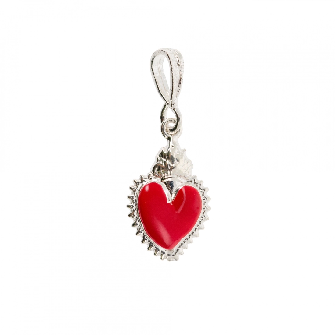 Ciondolo in argento 925, raffigurante il Cuore Votivo con la fiamma in alto, dall'altezza totale di 2,5 cm (il solo cuore votivo senza gancio è alto 1,6cm). Le dimensioni permettono di indossarlo ovunque si voglia, per esempio può essere appeso ad un bracciale oppure ad una catenina. Pratico e leggero da indossare tutti i giorni. Realizzato in Italia da un'azienda specializzata nella produzione artigianale di articoli in filigrana di argento.