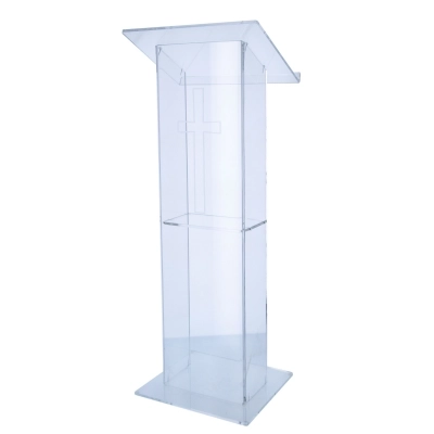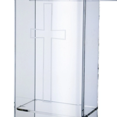 Leggio in plexiglass trasparente, pensato per integrarsi con eleganza in ogni spazio sacro.