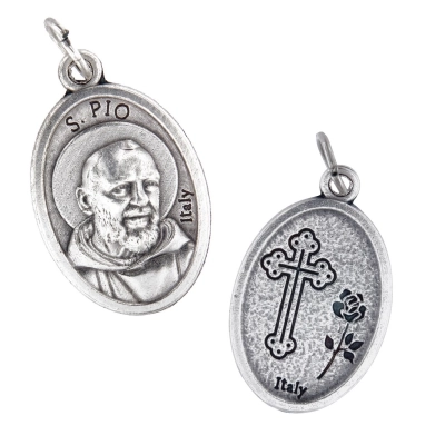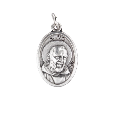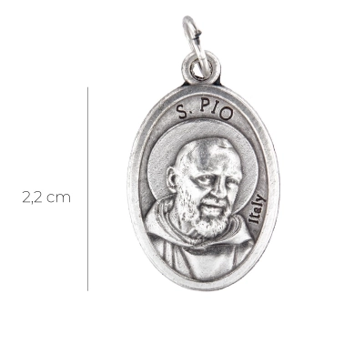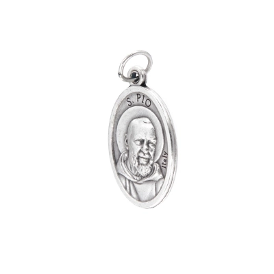 Medaglia ovale di San Pio, in zama. La medaglia è dotata di anellino da utlizzare come pendente in una catenina, per essere indossata al collo. Grazie alla sua dimensione è comoda da portare sempre con sè, per esempio dentro al portafoglio o portamonete. La medaglia è ben rifinita e tutti i particolari sono ben visibili e dettagliati. La medaglia è realizzata in Italia da un'azienda artigianale e leader nella produzione di medaglie.