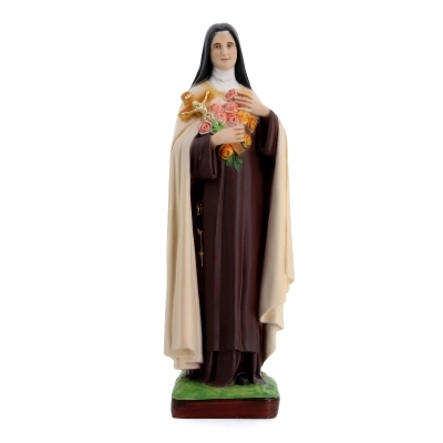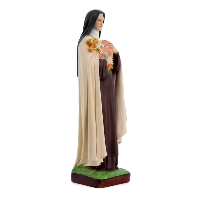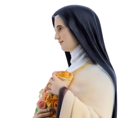 Bellissima statua, dall'altezza di 50 cm, realizzata in resina e dipinta con estrema cura dei dettagli e nelle sfumature di colore. La statua, realizzata interamente in resina colorata, rappresenta Santa Teresa di Lisieux. Realizzata in Italia da artigiani esperti nella produzione di statue in resina e vetroresina.