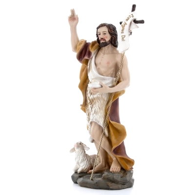 Statua di san Giovanni Battista, in resina colorata dell'altezza di 22,3 cm. finemente decorata e dipinta con precisione.