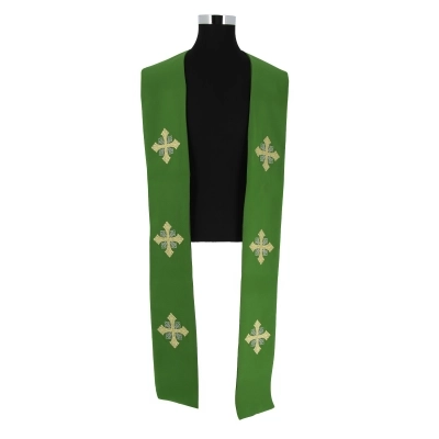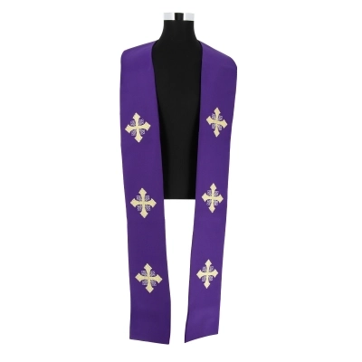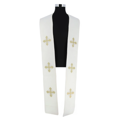 Stola sacerdotale semplice e raffinata, in poliestere, decorata con 3 croci, in filo oro e bianco. Disponibile nei quattro colori di rito: avorio, verde, viola e rosso. La lunghezza della stola è di 246 cm, ideata per arrivare ben oltre al ginocchio del sacerdote che la indossa.