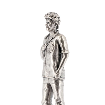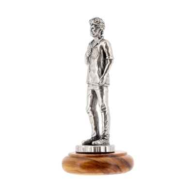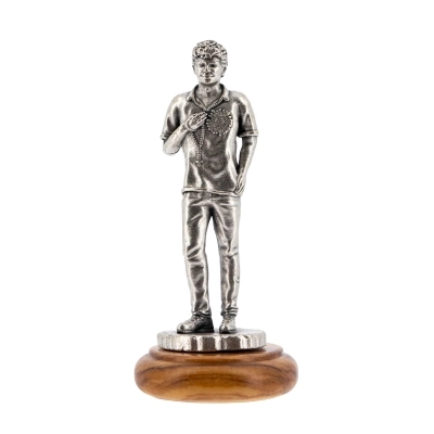 Statua, dall'altezza di 6,5 cm, realizzata in metallo con base in legno d'ulivo, raffigurante San Carlo Acutis.