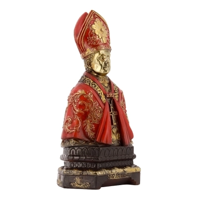 Graziosa e dettagliata statua in resina che raffigura il busto di San Gennaro. San Gennaro, è il santo patrono della città di Napoli e dell'arcidiocesi di Napoli. È venerato come martire cristiano e la sua festa viene celebrata il 19 settembre. San Gennaro è particolarmente noto per il cosiddetto "miracolo del sangue", in cui il suo sangue conservato come reliquia si liquefa durante le cerimonie religiose. Questo fenomeno è considerato un segno di protezione e benedizione per la città di Napoli. San Gennaro è invocato come protettore contro i disastri naturali e come intercessore per le cause impossibili.