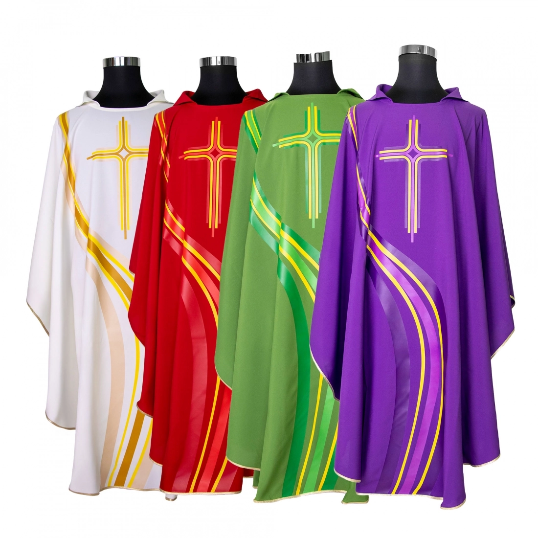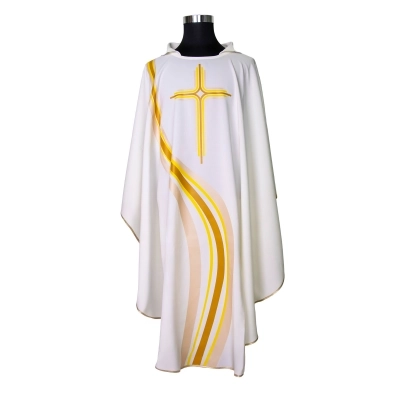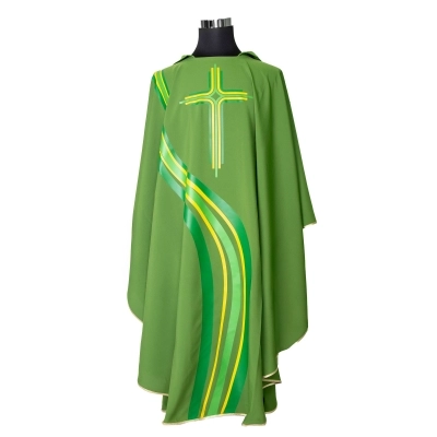 Casula sacerdotale stampata in tessuto 100% poliestere microfibra, tessuto leggerissimo e adatto per i periodi più caldi. La stampa della casula si sviluppa principalmente sul davanti con una croce e un motivo di linee astratte che prosegue sul retro. Prodotto interamente in Italia, da un'azienda di artigiani esperti che da molti anni opera nel settore dei paramenti sacri, creando prodotti artigianali e di altissima qualità. Disponibile nei 4 colori liturgici.