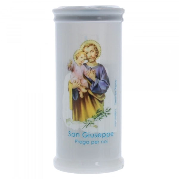 Accendi la luce della fede con questo cero votivo dedicato a San Giuseppe, modello di fede, silenzio e obbedienza, protettore della famiglia, dei lavoratori e della Chiesa universale. Realizzato in plastica resistente, presenta un’immagine a colori di San Giuseppe con il Bambino Gesù e la scritta “Prega per noi”, invito a confidare nella sua paterna intercessione.
