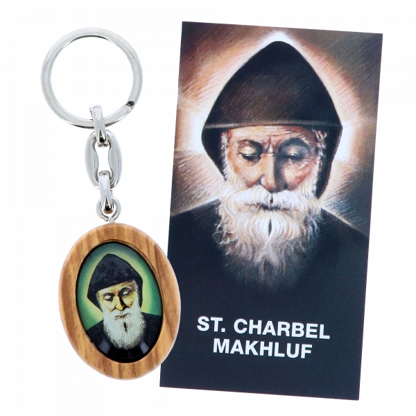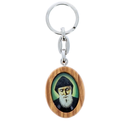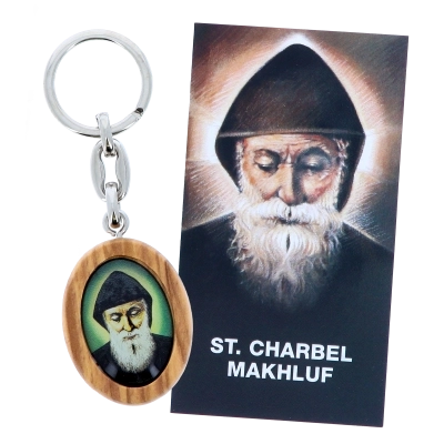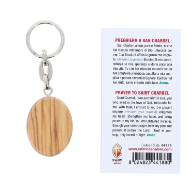 Il portachiavi, realizzato con cura, presenta un ciondolo ovale in legno naturale con immagine nitida di San Charbel, il monaco libanese conosciuto in tutto il mondo per i suoi miracoli e la sua potente intercessione. Il pieghevole incluso offre una meditazione introduttiva sulla figura del santo e una preghiera a San Charbel, rendendo questa confezione un prezioso strumento di devozione quotidiana.