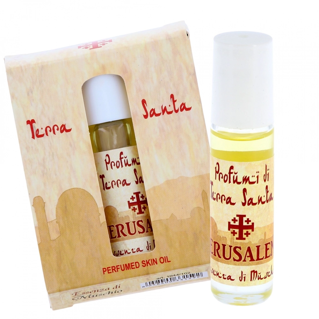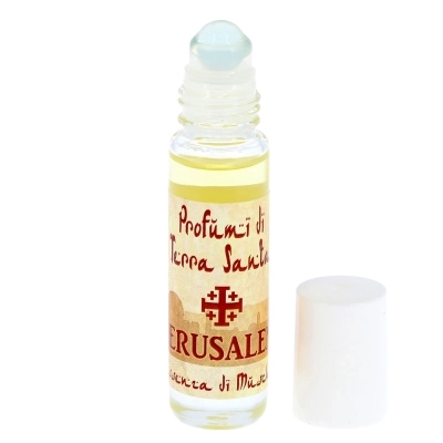 Raffinato olio profumato roll on ispirato ai profumi della Terra Santa, ideale per l'uso quotidiano e la meditazione. Realizzato con essenze naturali che ricordano i profumi biblici di Gerusalemme, questo olio diffonde un aroma dolce e spirituale che invita al raccoglimento e alla pace interiore.