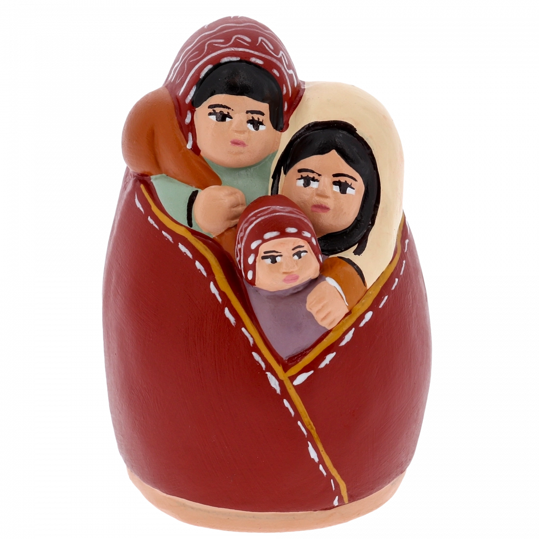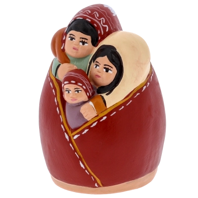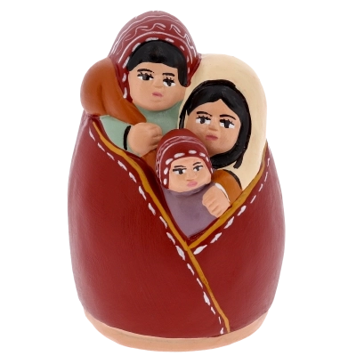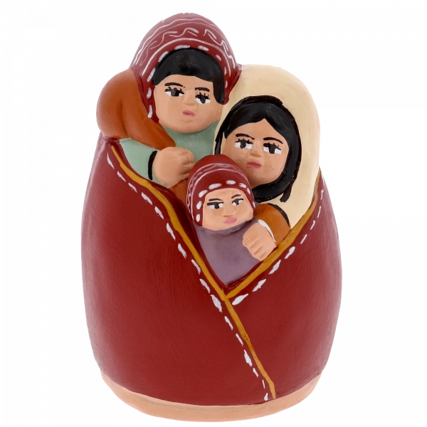 Sacra Famiglia in terracotta dipinta a mano, raffigurante Gesù Bambino, Maria e Giuseppe abbracciati in un’unica figura piena di tenerezza e armonia. Questa natività artigianale è perfetta per completare il tuo presepe o come decorazione natalizia religiosa dal grande valore simbolico.Realizzata con cura e dettagli delicati, rappresenta l’amore e la semplicità della famiglia di Nazareth, diventando un dono ideale per chi desidera portare in casa un segno di fede e spiritualità.