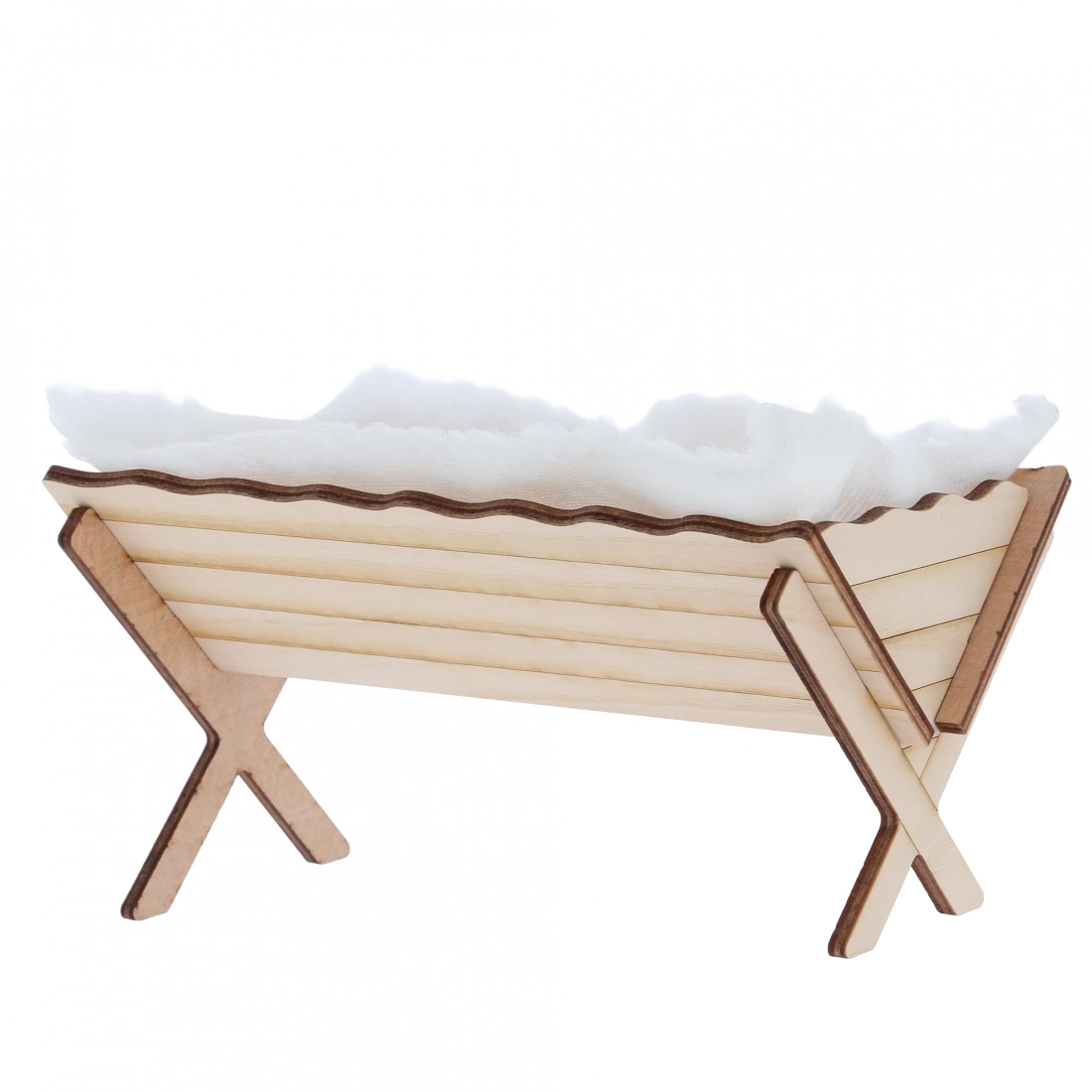 Completa la tua scena della Natività con questa culla/mangiatoia in legno, ideale come accessorio per presepi di ogni stile. La struttura è realizzata con doghe effetto legno e gambe incrociate che garantiscono stabilità e un aspetto rustico e autentico. L’interno è dotato di morbida ovatta bianca, perfetta per accogliere la tua statuina del Bambino Gesù (non inclusa). Questo accessorio si adatta a diverse dimensioni di figure, rendendolo versatile per presepi domestici, chiese e allestimenti natalizi. Le misure interne della culla sono Larghezza 8,5 cm - Profondità 15,5 cm e Altezza 4 cm.