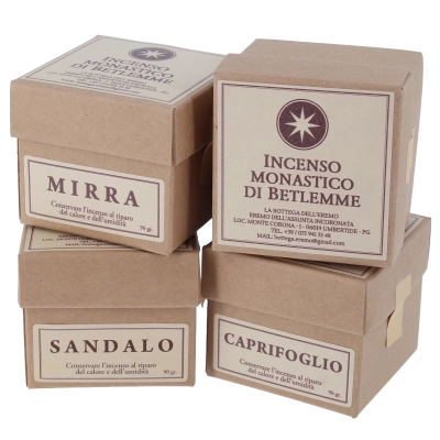 Incenso artigianale di alta qualità, prodotto dai Monaci di Betlemme secondo gli antichi metodi dell’Oriente cristiano, in un clima di preghiera, silenzio e raccoglimento. Ideale per la preghiera personale, la liturgia, l’adorazione eucaristica e la meditazione, questo incenso sacro unisce tradizione monastica e materie prime selezionate. Ogni confezione è custodita in un elegante cofanetto in cartoncino, progettato per preservare la fragranza dell’incenso e mantenerne intatta la profumazione nel tempo.