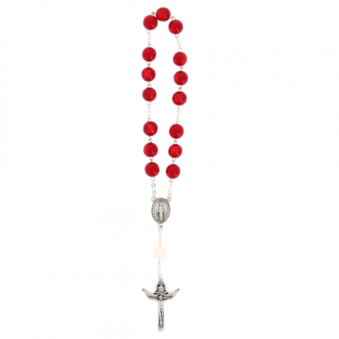 La corona è composta da 5 poste di 3 grani in imitazione madreperla rossa di diametro 8 mm. La crociera è la Medaglia Miracolosa. La croce finale è molto particolare, in quanto vi è rappresentata la Trinità. Pregando questa coroncina si siutano le anime che si trovano in Purgatorio a ridurre le proprie sofferenze e loro possono intercedere con la preghiera ottenedoci grazie indicibili!