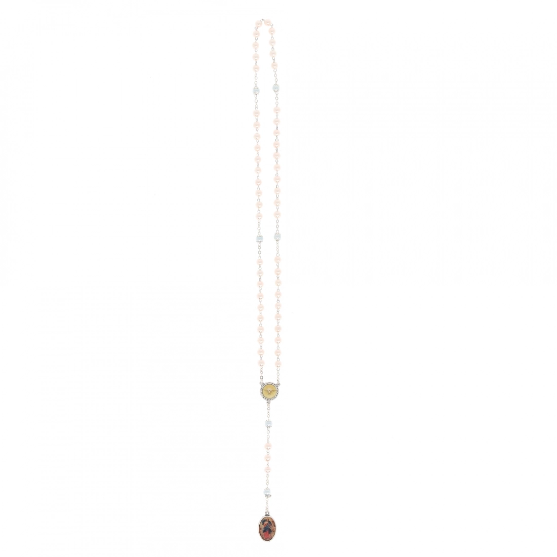 La corona è composta da 5 poste di 10 grani, di diametro 6 mm, perlati bianchi con Pater perlati celesti. La crociera raffigura lo Spirito Santo e sulla medaglia finale è raffigurata l'immagine di Maria che scioglie i nodi. La corona è facilmente indossabile al collo. Questa è la preghiera di chi spera che tutto sia possibile a Dio, anche superare quegli ostacoli che sembrano insormontabili: litigi e violenze, rancori, difficoltà materiali o spirituali, tradimenti e divisioni familiari, malattie, vizi, insomma qualsiasi cosa che ci allontana da Dio.