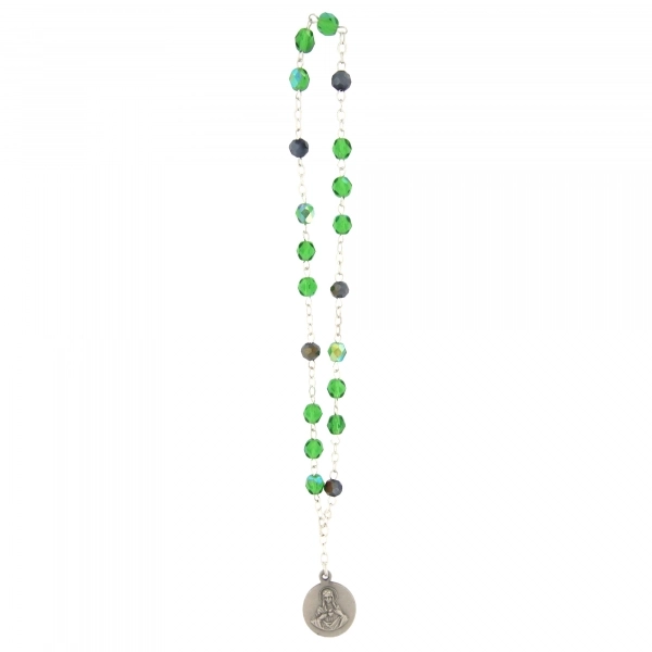 Decina in metallo con medaglie di san Benedetto da 1 cm di diametro, intervallate da grani in vetro perlato bianco oppure in ematite di diametro 6 mm. Piccola, pratica e comoda, può essere sempre portata con sé. È anche una bellissima idea regalo pensata per chi è molto devoto o per avvicinare alla figura di san Benedetto. La decina è dotata di un moschettone che ne consente l'apertura e la chiusura, così da poterla indossare al polso o appendere ovunque si vuole, anche in macchina.