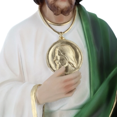 Bellissima statua, dall'altezza di 30 cm, realizzata in resina e dipinta con estrema cura dei dettagli e nelle sfumature di colore. La statua, realizzata interamente in resina colorata, rappresenta San Giuda Taddeo. Realizzata in Italia da artigiani esperti nella produzione di statue in resina e vetroresina.