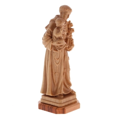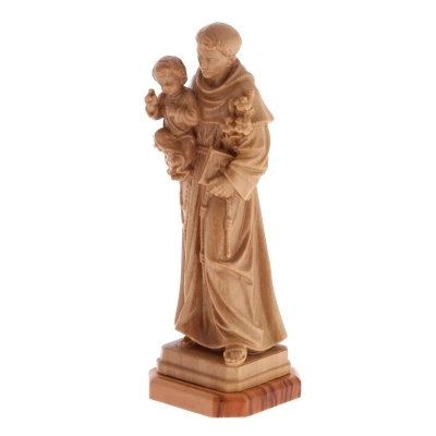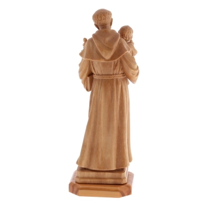 Bellissima ed elegantissima statua, realizzata in legno d'olivo di alta qualità, raffigurante Sant'Antonio da Padova. Il legno d'olivo, grazie al suo tipico colore e alle venature scure sempre diverse, rende ogni pezzo unico. Prodotta in Italia da un'azienda specializzata nella lavorazione del legno, specialmente quello di ulivo, lasciato riposare diversi anni prima della lavorazione, questo per garantire maggiore resistenza e durata nel tempo al prodotto finito.