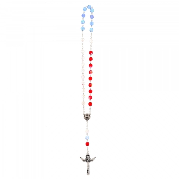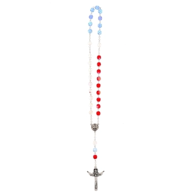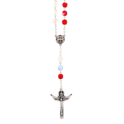 La corona è composta da 3 poste di 9 grani, di diametro 6 mm, in cristallo bianco, rosso e celeste. La crociera raffigura lo Spirito Santo e la croce finale è molto particolare in quanto viene raffigurata la Trinità. Questa preghiera è una delle più belle in onore della santissima Trinità, un'eco solenne del "Santo, Santo, Santo" che cantano in cielo gli Angeli e i Santi, canto di lode e gloria alla santa Trinità.