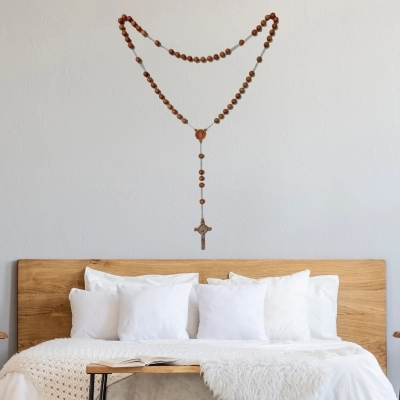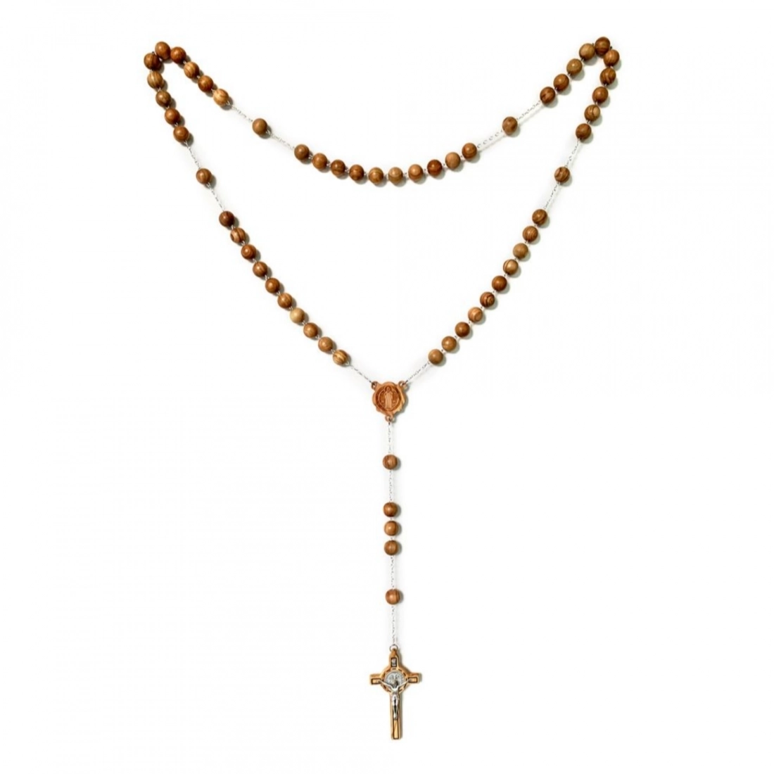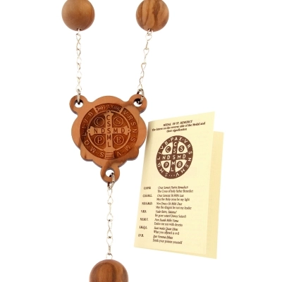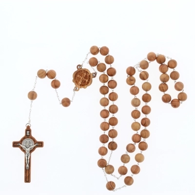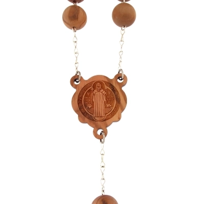 Il rosario è realizzato in legno d'ulivo, montato su catena in metallo. Questo rosario si definisce di san Benedetto in quanto presenta sia croce che crociera con la medaglia di san Benedetto. Nella croce ci sono inserti in metallo. I grani ovali di questo rosario hanno diametro di 22 mm. Articolo realizzato in Italia con legno d'ulivo di ottima qualità e lasciato riposare diversi anni prima di essere lavorato, questo per garantire la resistenza dell'oggetto nel tempo.
