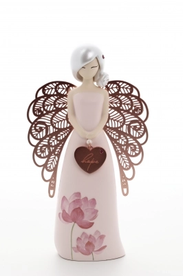 Bellissima statua in resina (dell'altezza di 12,5 cm), della linea “Your are an Angel”, dipinta a mano. Rappresenta un angelo con uno strass applicato tra i capelli e si presenta in una confenzione molto elegante, realizzata con tenui colori pastello. Ogni angelo è personalizzato attraverso una frase, un messaggio che esprime amore, gratitudine e incoraggiamento verso chi lo riceve.