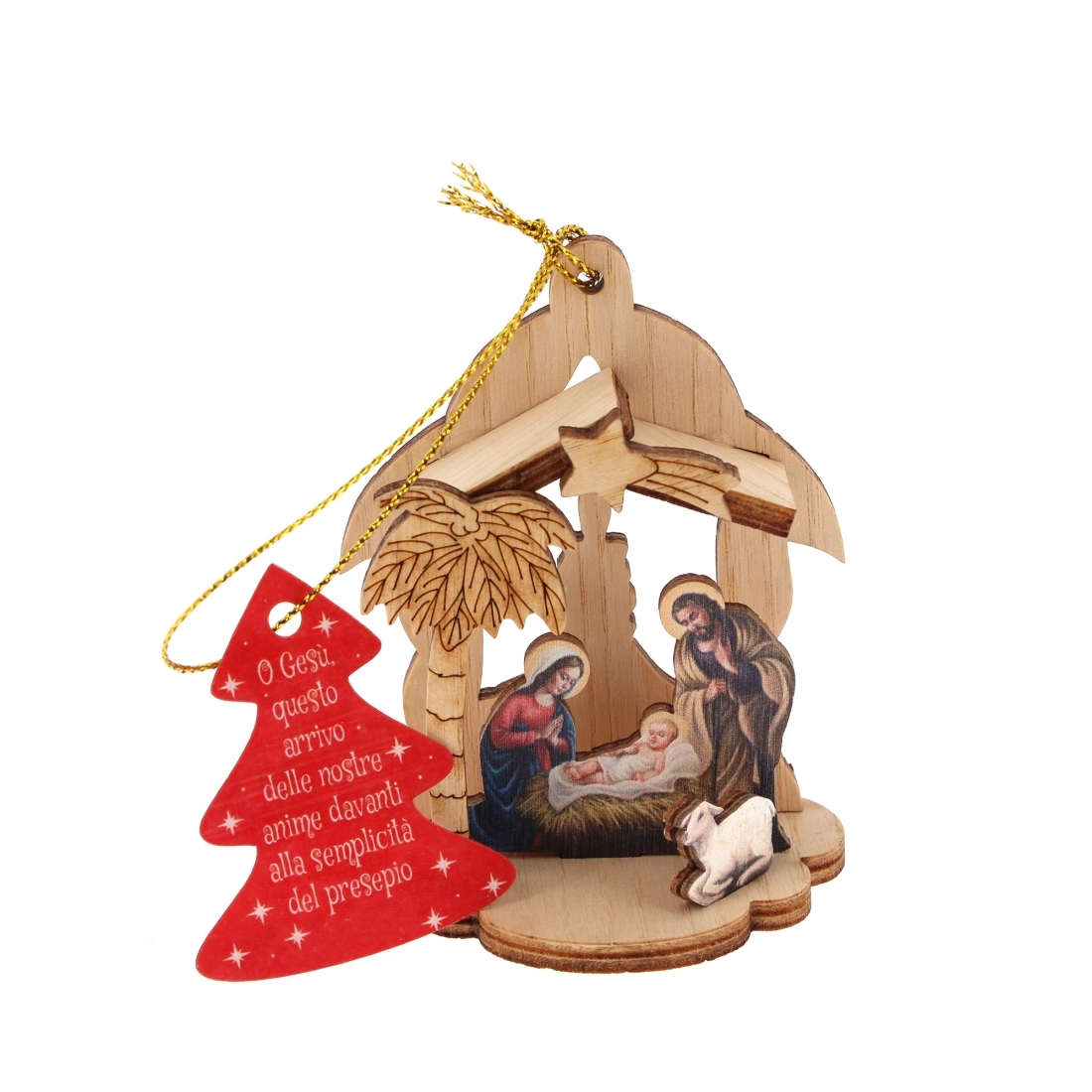 Bellissima decorazione natalizia in legno, un piccolo presepe da appendere all'abero di Natale o da appoggiare ovunque vogliate! Confezionato in una scatolina natalizia e festosa, questa natività è un pensierino dolcissimo da regalare. I soggetti sono assortiti, verrà inviato il primo soggetto disponibile.