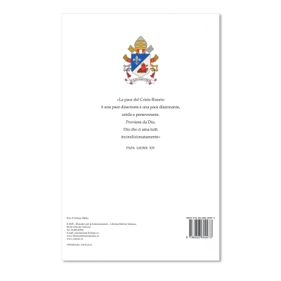 Foto ufficiale di Papa Leone XIV stampata a colori fronte retro con stemma e frase in lingua italiana.
