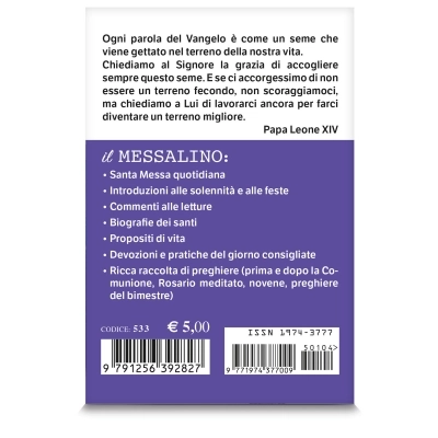 A un prezzo competitivo, offre tutte le letture della Messa di ogni giorno e i relativi commenti; presenta quasi ogni giorno la figura di un santo, beato, venerabile… perché i santi di qualsiasi epoca possono illuminare la nostra vita! Inoltre, un’intera sezione è dedicata alla preghiera e, inquadrando un QR code, si accede a contenuti disponibili gratuitamente online.