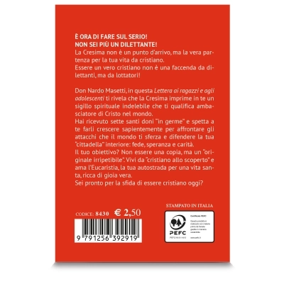 Don Nardo Masetti, in questa Lettera ai ragazzi e agli adolescenti rivela che la Cresima imprime un sigillo spirituale indelebile che qualifica chi lo riceve quale ambasciatore di Cristo nel mondo.