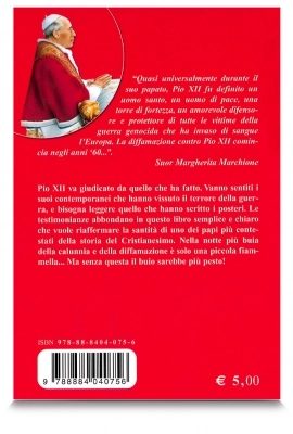 Ecco un libro che racconta papa Pacelli non evitando le questioni scabrose o difficili. Lo si può leggere e trarne grande beneficio solo con animo disponibile, evitando la sterile dialettica e la reazione scandalizzata attorno alla Shoah e alla tragedia di Auschwitz. Da tutto traspare l’itinerario mistico di Pio XII, la sua consacrazione al Signore, l’essersi affidato totalmente a lui, l’essersi posto sotto il manto della Mamma celeste.