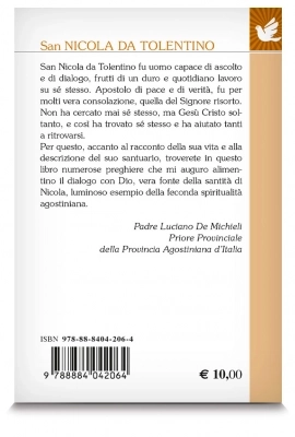 La straordinaria vicenda umana e spirituale di un Santo, tanto amato dal popolo cristiano, viene narrata nella sezione biografica con tutta la freschezza e la semplicità di una vita ordinaria. Umiltà, semplicità, fede e preghiera sono i tratti distintivi di san Nicola da Tolentino: il suo messaggio è ancora decisamente attuale; nella sezione dedicata all’analisi della spiritualità comprendiamo la profonda essenza agostiniana di Nicola, e nello stesso tempo scopriamo la sua singolare devozione per i defunti: san Nicola è patrono delle anime del Purgatorio. Varie poi sono le proposte di preghiera presentate: i sette lunedì di san Nicola, la Novena per chiedere una grazia, la preghiera dei genitori per i figli, la preghiera per le anime sante del Purgatorio e tante altre.