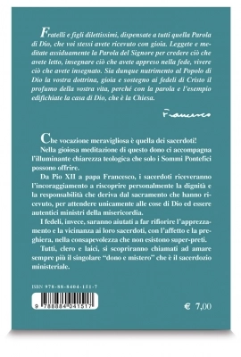 Che vocazione meravigliosa è quella dei sacerdoti! Nella gioiosa meditazione di questo dono ci accompagna l’illuminante chiarezza teologica che solo i Sommi Pontefici possono offrire. Da Pio XII a papa Francesco, i sacerdoti riceveranno l’incoraggiamento a riscoprire personalmente la dignità e la responsabilità che deriva dal sacramento che hanno ricevuto. I fedeli, invece, saranno aiutati a far rifiorire l’apprezzamento e la vicinanza ai loro sacerdoti, con l’affetto e la preghiera, con la consapevolezza che non esistono super-preti. Tutti, clero e laici, si scopriranno chiamati ad amare sempre di più il singolare “dono e mistero” che è il sacerdozio.
