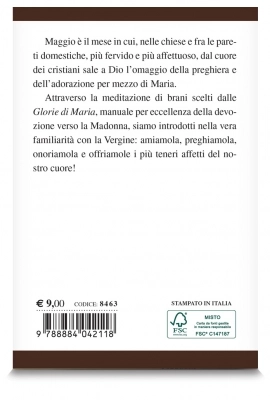 Il libro propone per ogni giorno uno schema di preghiera, per aiutare la comunità cristiana e il singolo fedele a celebrare il mese di maggio in forma comunitaria con una partecipazione diretta e coinvolgente. Per ogni giorno del mese vengono presentate letture bibliche, con testi di meditazione tratti dal libro “Le glorie di Maria”. Questo testo di sant’Alfonso è giustamente chiamato “il libro mariano best-seller in assoluto”; infatti, dal 1750 a oggi continua a essere il volume mariano più diffuso. Le meditazioni, riviste e attualizzate nel linguaggio, sono tratte da “Percorsi di speranza. Pagine mariane di sant’Alfonso Maria de Liguori” a cura di padre Alfonso Amarante. Il volume, inoltre, è stato arricchito con la riproduzione di alcune incisioni delle Litanie Lauretane, opera di Johann Baptist e Joseph Sebastian Klauber.