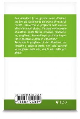 Don Alberione fu un grande uomo d’azione, ma ben più grande lo fu dal punto di vista spirituale: trascorreva in preghiera dalle quattro alle sei ore ogni giorno. Si alzava molto presto al mattino: santa Messa, breviario, meditazione, preghiera… Prima di ogni decisione importante passava la notte in adorazione. Recitando le preghiere di don Alberione, autentiche e preziose perle, non solo porterai la preghiera nella vita, ma la vita nella preghiera.
