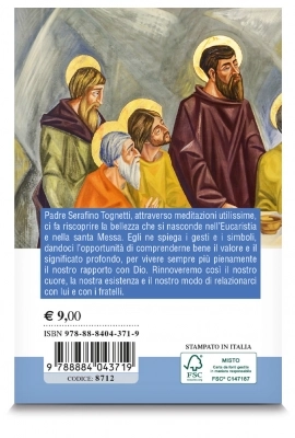 Padre Serafino Tognetti, attraverso meditazioni utilissime, ci fa riscoprire la bellezza che si nasconde nell’Eucaristia e nella santa Messa. Egli ne spiega i gesti e i simboli, dandoci l’opportunità di comprenderne bene il valore e il significato profondo, per vivere sempre più pienamente il nostro rapporto con Dio. Rinnoveremo così il nostro cuore, la nostra esistenza e il nostro modo di relazionarci con lui e con i fratelli.