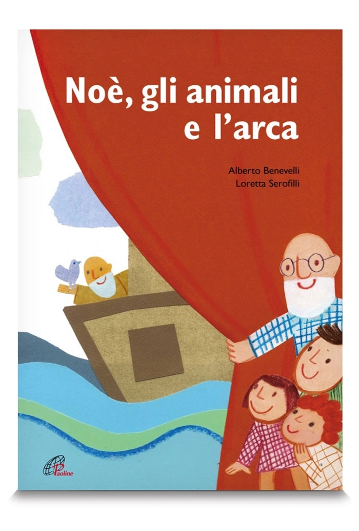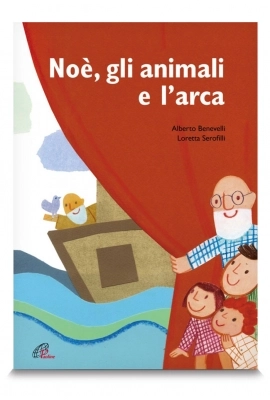 «Tante nuvole scure riempiono il cielo. Arriva il diluvio! Piove, piove, piove. Noè e gli animali partono con l’arca. Poi la pioggia si ferma. Cosa sarà successo? Un nonno conosce la risposta e la racconta ai nipotini».