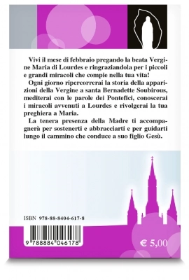 Don Gianni Toni propone un originale itinerario per vivere il mese di febbraio in compagnia della Vergine Maria di Lourdes e per riscoprire la sua presenza, di donna e di madre, accanto a ciascuno di noi, in ogni momento. L’agile sussidio mariano si presenta come una guida quotidiana, molto utile per la preghiera personale e comunitaria. Il cammino di ogni giorno prevede un brano per conoscere la storia delle apparizioni della Vergine a santa Bernadette Soubirous; una meditazione, tratta dalle parole dei Pontefici, che illumina il mistero della sofferenza e della malattia; la presentazione di uno dei miracoli avvenuti a Lourdes e, infine, una preghiera da rivolgere alla Vergine Maria. Un volume per accogliere Maria nella casa del proprio cuore, per vivere un mese insieme con lei, per costellare di preghiera e di amore il nostro cammino personale e comunitario.