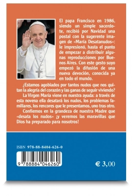 ¿Estamos agobiados por tantos nudos que nos quitan la alegría del corazón y las ganas de seguir viviendo? La Virgen María viene en nuestra ayuda: a través de esta novena ella desatará los nudos, los problemas familiares, los rencores que le presentamos, uno tras otro.