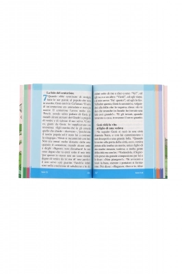 L’uso dei colori permette di trovare facilmente i singoli libri: Vangelo di Matteo (sezione verde), Vangelo di Marco (sezione rossa), Vangelo di Luca (sezione celeste), Vangelo di Giovanni (sezione arancione) e Atti degli Apostoli (sezione blu).
