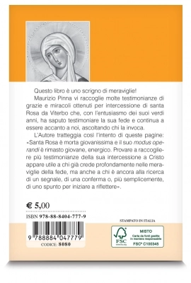 Maurizio Pinna raccoglie in questo libro molte testimonianze di grazie e miracoli ottenuti per intercessione di santa Rosa da Viterbo, tracciando un percorso di meraviglie che si deve a questa santa giovanissima. Rosa, con l’entusiasmo dei suoi verdi anni, ha saputo testimoniare la sua fede e continua a essere accanto a noi, ascoltando e aiutando in tanti modi diversi chi la invoca e a lei si affida. Il volume contiene inoltre un agile profilo biografico di santa Rosa, utile per chi si avvicina per la prima volta a questa figura straordinaria.
