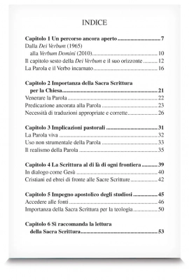Marco Cardinali porta il lettore alla scoperta della parte conclusiva della “Dei Verbum”. Si focalizza con dovizia di particolari sull’intero capitolo sesto che ha per titolo “La Sacra Scrittura nella vita della Chiesa”. Pur rimanendo ancorati alla profondità teologica che si respira nei cinque capitoli precedenti, col capitolo finale si entra gradualmente in un orizzonte più pastorale, più esistenziale e certamente affascinante ed attuale riguardante il nostro cammino di credenti. Si delineano, così, percorsi e tematiche che coinvolgono in profondità la vita di fede anche negli aspetti più inerenti alla sua quotidianità. L’appendice termina la lettura della “Dei Verbum” e apre uno sguardo sull’esortazione apostolica di papa Francesco “Evangelii Gaudium” e sul discorso di Benedetto XVI al clero di Roma.