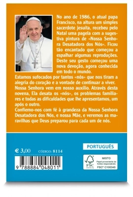 No ano de 1986, o atual papa Francisco, na altura um simples sacerdote jesuíta, recebeu pelo Natal uma pagela com a sugestiva pintura de «Nossa Senhora Desatadora dos Nós». Ficou tão encantado que começou a espalhar algumas reproduções. Deste seu gesto começou uma nova devoção. Estamos sufocados por tantos «nós» que nos tiram a alegria do coração e a vontade de continuar a viver. Nossa Senhora vem em nosso auxílio. Através desta novena, Ela desata os «nós», os problemas familiares e todas as dificuldades que lhe apresentamos.