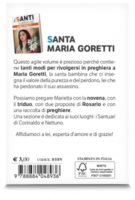 Questo agile volume è il primo di una nuova collana dedicata alle preghiere rivolte ai santi più amati. È un libro prezioso perché contiene tanti modi per rivolgersi in preghiera a Maria Goretti, la santa bambina che ci insegna il valore della purezza e del perdono, lei che ha perdonato il suo assassino. Possiamo pregare Marietta con la novena, con il triduo, con due proposte di Rosario (uno schema ricostruisce, in ogni meditazione, i tratti salienti della vita di Maria Goretti e uno schema è arricchito dalle meditazioni di san Giovanni Paolo II) e con una raccolta di preghiere.