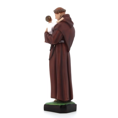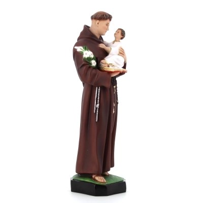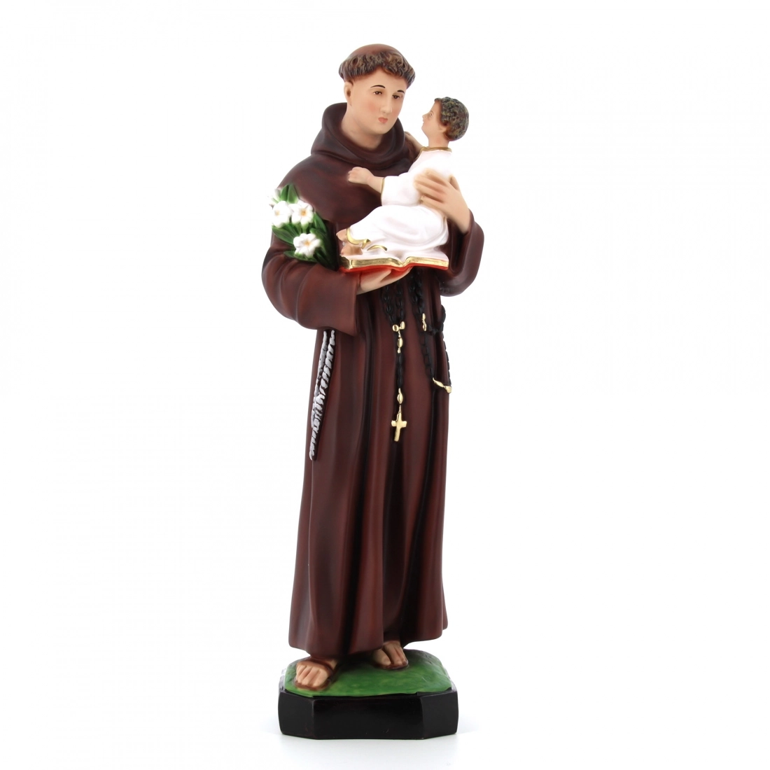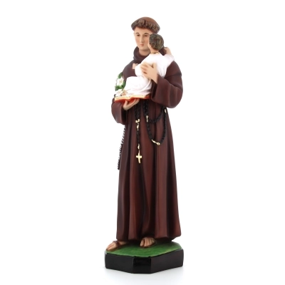 Bellissima Statua di Sant'Antonio di Padova, realizzata in resina, dell'altezza di 60 cm. Sant'Antonio di Padova è un santo molto venerato nella tradizione cattolica, noto per i suoi insegnamenti spirituali, i miracoli e la sua devozione alla carità. Nato in Portogallo nel XII secolo, Sant'Antonio trascorse gran parte della sua vita in Italia, in particolare a Padova, dove è sepolto. È spesso rappresentato con il Bambino Gesù e il giglio, simboli della sua purezza e della sua santità. Sant'Antonio è invocato come patrono dei poveri, degli oppressi e degli oggetti smarriti.