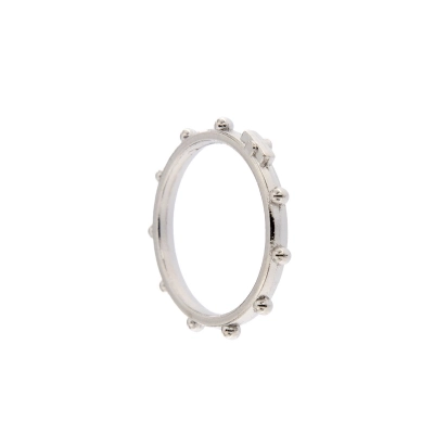 Sempice ed economico anello decina in metallo nickelato. Utilissimo strumento per pregare il rosario. E' caratterizzato da dieci piccoli rilievi per aiutare a tenere traccia delle preghiere. Disponibile in tre diverse misure.