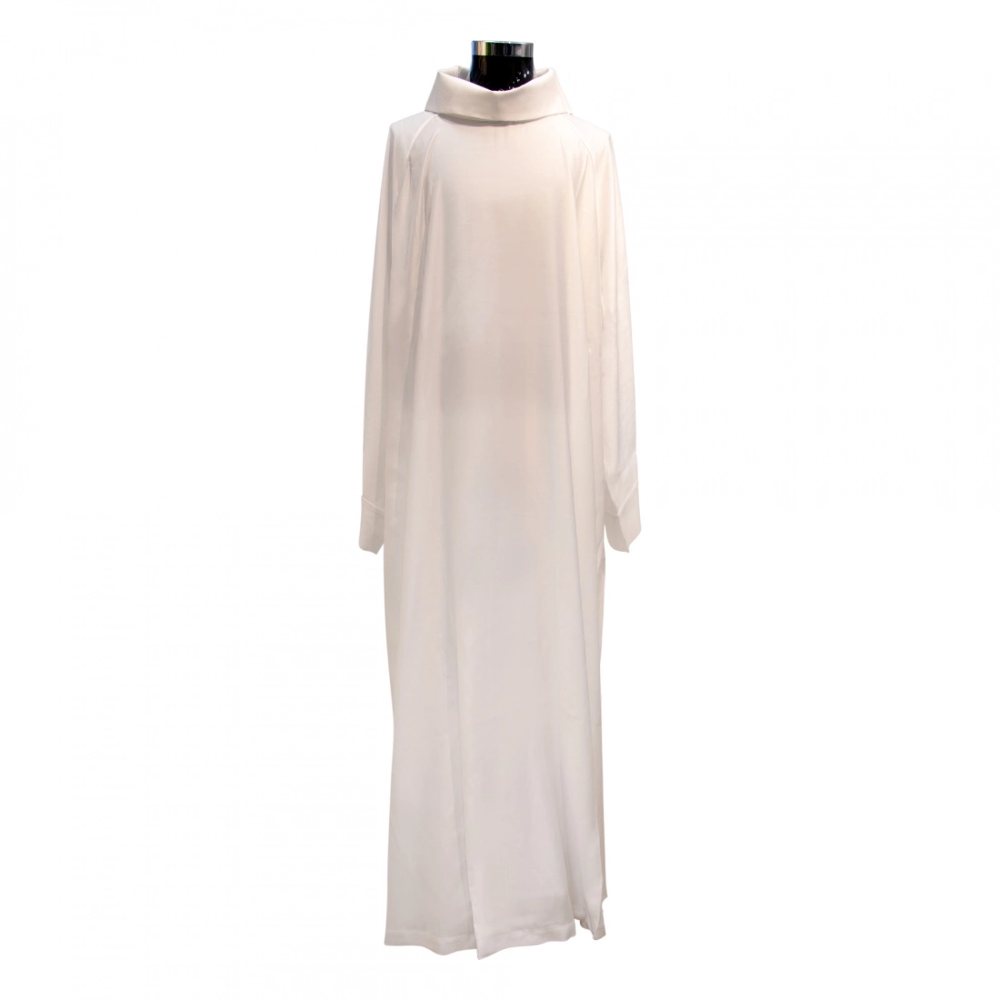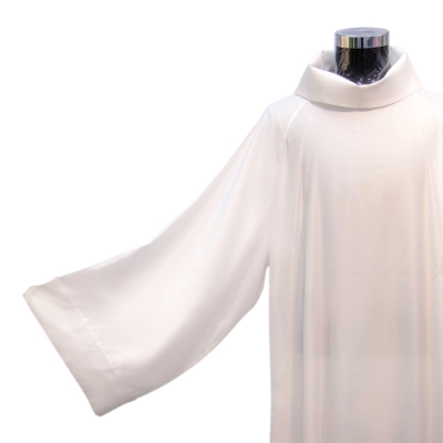 Camice sacerdotale a tinta unita bianco, confezionato in tessuto 48%Modal e 52% Viscosa. Modello semplice e svasato con chiusura zip posta sul petto. Il tessuto Modal è un tessuto naturale, ricavato dalle fibre di faggio, molto utilizzato in estate in quanto rimane molto leggero e fresco. Al Modal viene aggiunta una percentuale di viscosa, così da rendere il camice più facile da trattare nella fase di lavaggio e stiratura. Prodotto interamente in Italia, da un'azienda di artigiani esperti che da molti anni opera nel settore dei paramenti sacri, creando prodotti artigianali e di altissima qualità.