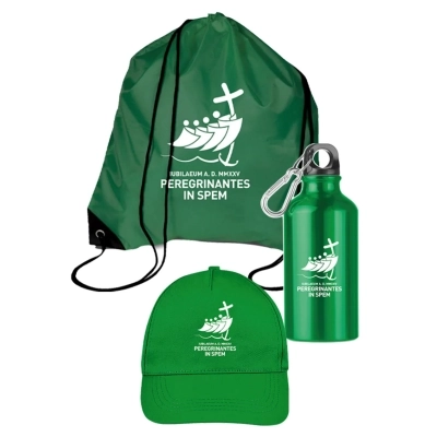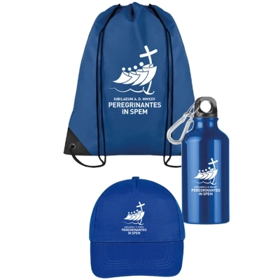 Il kit è disponibile in tre diversi colori: blu, verde e rosso. Ciascuno degli accessori presenta il logo del Giubileo 2025 insieme al motto Peregrinantes in Spem – Pellegrini di Speranza in bianco.