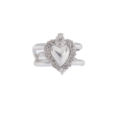 Semplice ed elegante anello regolabile con Cuore Votivo in argento 925. La struttura dell'anello è formata da due fascette separate che lasciano intravedere la pelle del dito, una volta indossato, questo lo rende molto particolare e dona molta importanza a tutto il prodotto. Pratico e leggero da indossare tutti i giorni. L'anello è regolabile per cui è adatto a qualsiasi tipologia di dito. Realizzato in Italia da un'azienda specializzata nella produzione artigianale di articoli in filigrana di argento.