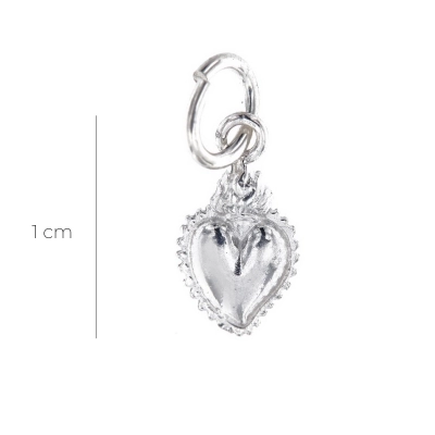 Ciondolo in argento 925, raffigurante il Cuore Votivo con sopra la fiamma, dall'altezza di 1 cm. Le piccole dimensioni permettono di indossarlo ovunque si voglia, per esempio può essere appeso ad un bracciale oppure ad un cerchietto orecchino. Pratico e leggero da indossare tutti i giorni. Realizzato in Italia da un'azienda specializzata nella produzione artigianale di articoli in filigrana di argento.