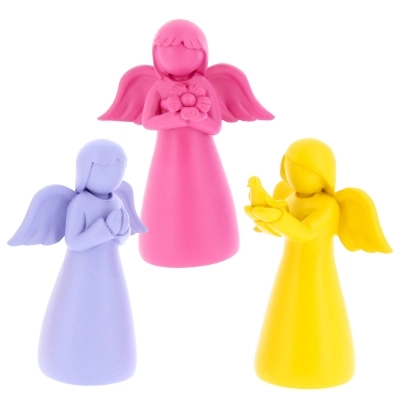 Un'originale e rappresentativa statua di Angelo, dai colori accessi e brillanti, disponibile in diversi colori e posizioni, adatta per essere collocata in qualsiasi ambiente domestico, soprattutto nella cameretta dei bambini. Carinissima idea regalo da donare in qualsiasi occasione, per offrire un oggetto vivace e allegro, ma che allo stesso tempo racchiude un valore grandissimo, capace di rendere felice la persona a cui è destinato!